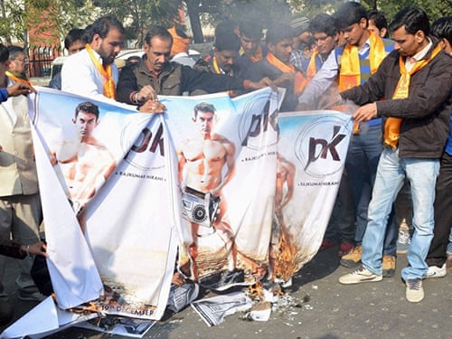 De même PK s’est attiré les foudres de la VHP car il ne représentait pas les divinités hindoues sous leur meilleur jour. Les militants du Bajrang Dal vandalisèrent et fermèrent alors un certain nombre de salles de cinéma… en particulier dans les régions gagnées par le BJP en 2014. En outre, l’acteur principal, Aamir Khan, musulman libéral très engagé, s’était déjà acquis l’animosité durable du BJP après avoir critiqué ouvertement N. Modi pour le traitement infligé aux populations déplacées par le barrage de Sardar Sarovar dans le Gujarat.