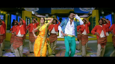 Il faut maintenant lier tout cela, et quoi de mieux pour fluidifier une histoire d’amour et quelques combats, qu’une bonne demi-douzaine de chansons, ou du beurre. Un des meilleurs éléments du film par ailleurs. La plupart des chorégraphies sont devenues cultes en Inde, notamment Pokkiri Pongal, que tous les fans de Vijay connaissent par coeur. Peu de personnes savent résister à un bon dappa avec une petite apparition de Prabhu Deva himself. En tout cas, je ne suis pas de celles-là. Beaucoup de chansons sont consacrées à la love story du film, pour mieux développer l’histoire et les sentiments des personnages. Le clip de la mangue notamment, indique au spectateur qui ne l’aurait pas compris, que Tamil et Shruti ne sont pas si innocents qu’ils en ont l’air. Beaucoup de mélodies restent dans la tête.