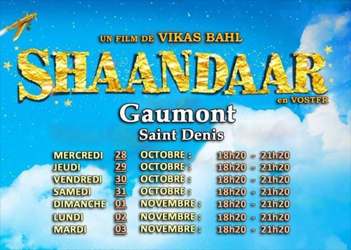 [Edit 28/10] Deuxième semaine en France pour la comédie romantique familiale réunissant Shahid Kapoor et Alia Bhatt à l’écran. Ne manquez pas Shaandaar.