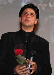 C’est au tour de Shah Rukh Khan. Les cris deviennent hystériques lorsqu’il traverse la salle. Tout le monde est debout sur les fauteuils, des centaines d’appareils photo flashent de partout, beaucoup de spectateurs ont quitté leur siège pour s’approcher de la scène, se régaler de ces stars, si belles, souriantes, amusées de provoquer autant de liesse. Shah Rukh Khan lui aussi dit qu’il est heureux d’être là, veut s’essayer à un petit clin d’œil français et ne trouve rien de mieux que le trop célèbre « voulez-vous coucher avec moi », évidemment les hurlements reprennent de plus belle… Le temps passe alors trop vite, Yash Chopra dit aussi quelques mots mais qui l’écoute ? Pamela Chopra a prévu de chanter « Tere Liye » et a beaucoup de mal à faire taire la foule en délire qui préfèrerait nettement quelques mots supplémentaires de Shah Rukh Khan, quels qu’ils soient. Même pendant qu’elle chante (plutôt bien d’ailleurs), le public n’a d’yeux que pour les stars, les sollicitant pour recueillir une bribe d’attention, un signe, un regard, un sourire…