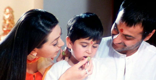 Nandini (Karisma Kapoor) vit au Canada où, orpheline, elle a grandi entourée de l’affection de ses oncles ; elle se marie avec son ami de longue date, Shekhar (Sanjay Kapoor). Raja naît bientôt et la petite famille vit très heureuse.