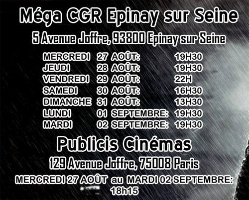L’avant-première du film aura lieu le 14 août 2014 à 19h30 et 22h30 au Méga CGR d’Epinay Sur Seine.